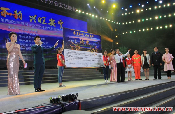 10月12日,一场满载着客乡浓情的文艺晚会在我市神光山广场举行,出席第四届世界客商大会环球国际 分会的各级领导嘉宾和全球客属商界精英,在兴投资企业家代表,驻兴部队官兵代表,国家、省、市各级媒体朋友,以及环球国际 广大干部群众代表等,近5000名嘉宾观众在现场聆听客乡和韵,共祝兴旺安宁。晚会还通过环球国际 电视台进行了现场直播,让百万环球国际 人民与现场观众共同享受了这一顿丰盛的文化大餐。