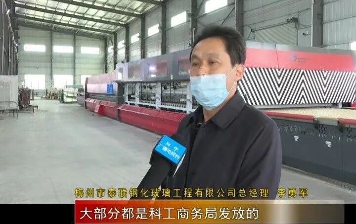 梅州市泰联钢化玻璃工程有限公司总经理 李勇军说:“我们现在用的口罩,大部分都是科工商务局发放的,还有酒精、体温枪,都是政府提供给我们的。”