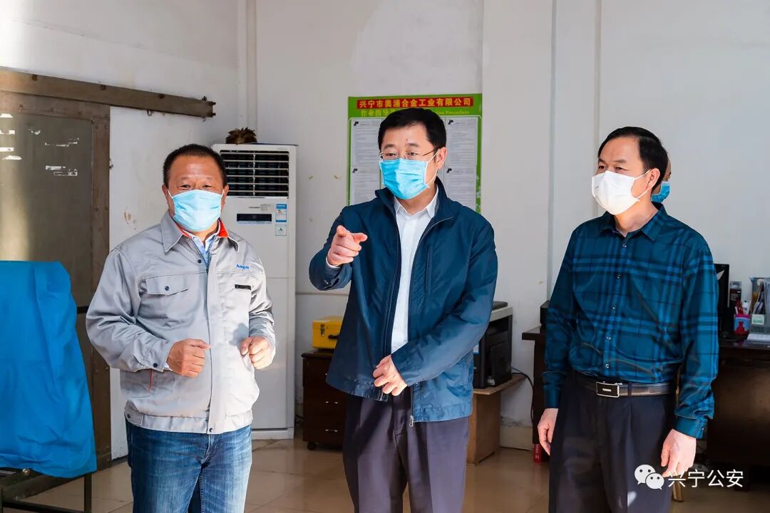 委副书记、市长洪国华,副市长、公安局党委书记、局长曾招强等陪同检查。 在奥浦合金工业有限公司,宁惠军深入生产车间了解企业复工复产情况,查看企业落实疫情防控的各项措施,与企业负责人进行深入交流复工后存在的困难和问题,嘱咐企业负责人要加强员工防护措施,稳妥有序推进复工复产。走访过程中,宁惠军同志向挂点联系企业负责人传达了梅州市委、市政府关于疫情防控、企业复工复产的有关文件精神,强调企业要始终把疫情防控工作放在第一位,履行好主体责任,把各项工作措施做严做实;要在抓好疫情防控的前提下,有序推进复工复产,将疫情防控与复工复产做到“两手抓、两手硬,两不误、两促进”;要坚定信心、着眼长远,政府将始终与企业站在一起,帮助企业解决复工复产中的问题,与企业共克时艰、共谋发展。