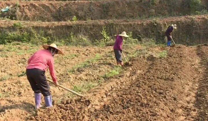 大地回春,万物复苏。在新圩镇大村村无花果种植基地,300亩无花果也竞相吐露新芽。农户们戴着口罩勤劳作业,有的在地里除草、有的在翻挖土地,现场一片忙碌生产景象。