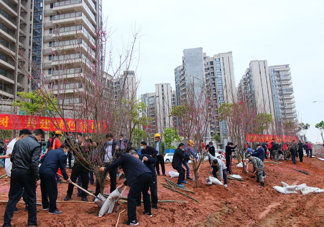 委书记余其豹率队到兴城亲水公园开展义务植树活动,以实际行动为我市生态涵养带建设增添绿色,让环球国际