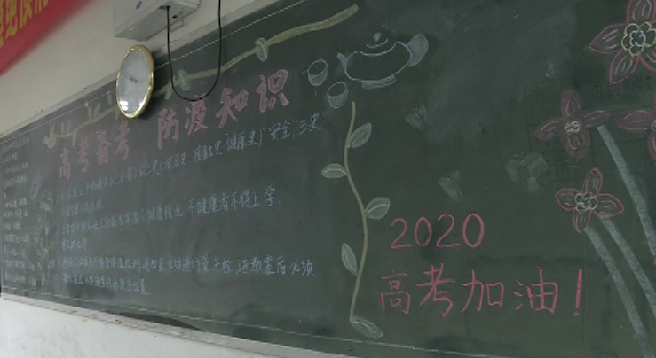 一中高三年级,书声琅琅,学习氛围紧张浓厚,虽然师生们都带着口罩,但丝毫不影响他们在课堂上的专注。而写着“高考备考和防疫知识”字样的黑板报,以及校园周边的防疫设施,都在传递着今年高考跟往年的不同。环球国际