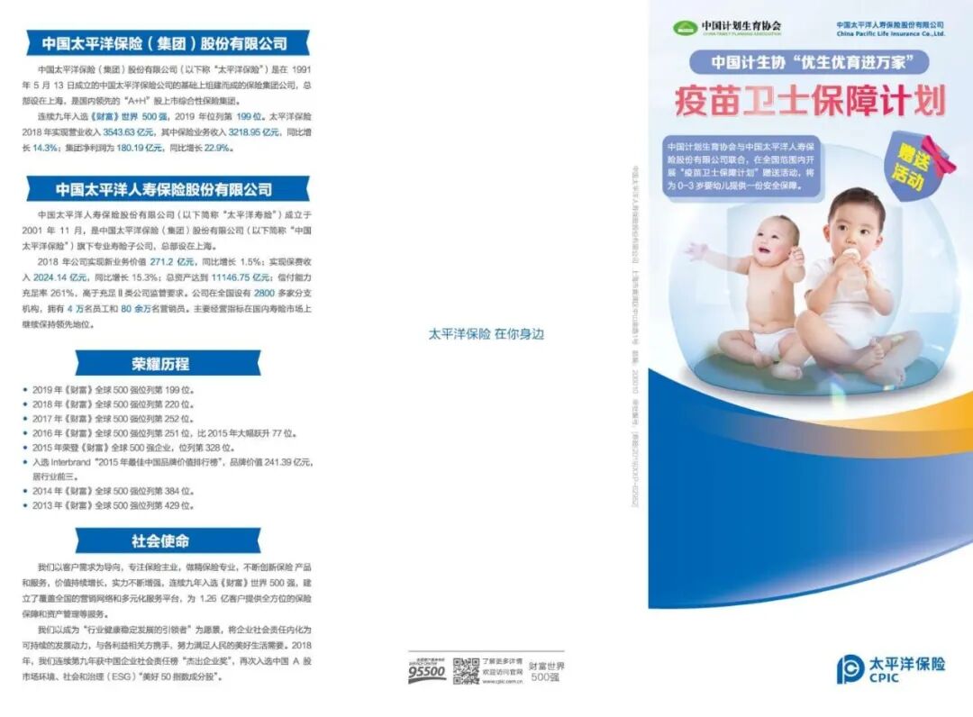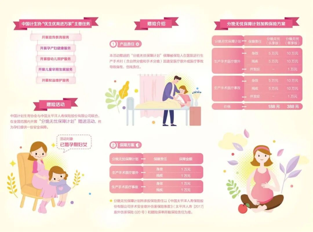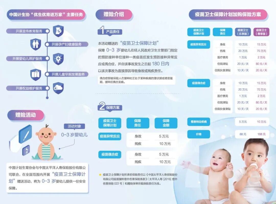 好消息! “疫苗卫士保障计划”“分娩无忧保障计划”免费赠送保险啦 为积极推动优生优育进万家活动,提高计划生育家庭健康和风险保障水平,广东省计生协联合中国太平洋人寿保险股份有限公司开展“疫苗卫士保障计划”“分娩无忧保障计划”免费保险赠送活动,近日,环球国际官网