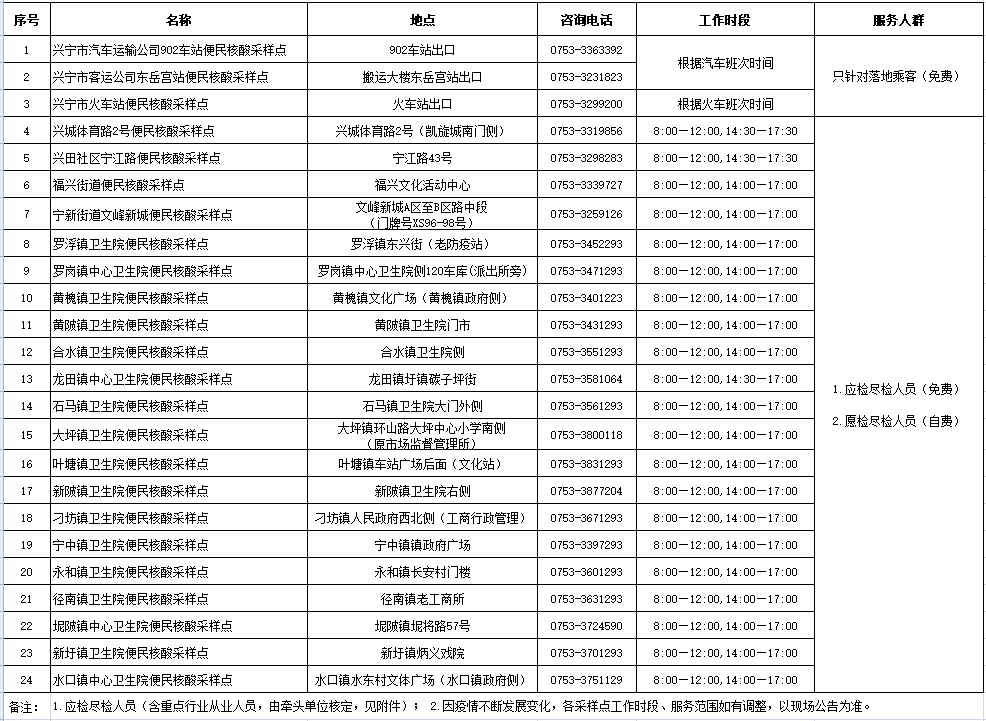 新冠病毒便民核酸采样点 注:若有变化,请以各接种和采样点公告为准