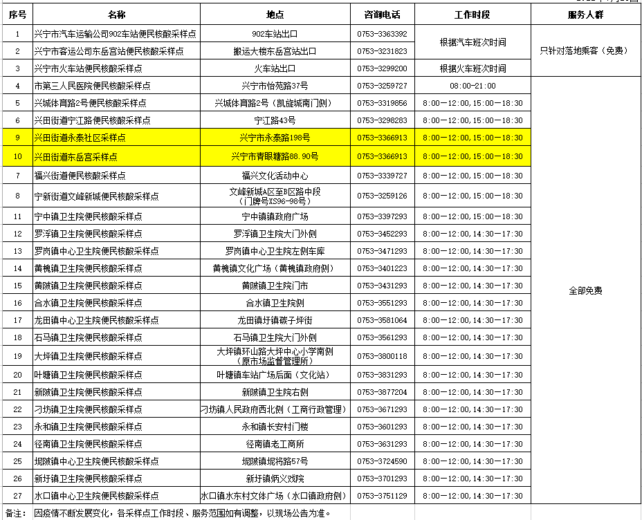 1.各采样点工作时段、服务范围如有调整,以现场公告为准。