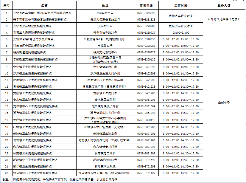 2.各采样点工作时段、服务范围如有调整,以现场公告为准。