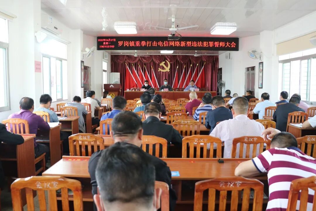 近日,罗岗镇在镇政府三楼会议室召开重拳打击电信网络新型违法犯罪誓师大会,镇领导班子、各村(社区)党支部书记、各村(居)委主任,驻村组长、移动、电信、银行等单位负责人参加会议。