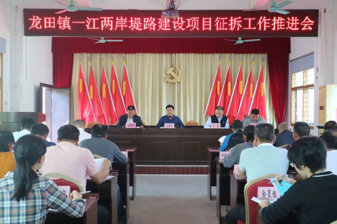 11月8日,龙田镇在镇政府三楼会议室召开一江两岸堤路建设项目征拆工作推进会,对一江两岸堤路建设项目用地范围内的房屋征拆工作进行升温鼓劲再部署。市住建局、第三方测绘评估公司相关负责同志和龙田镇一江两岸堤路建设项目领导小组成员,金星、曲塘、龙盘、五一等村工作组和全体村干部参加了会议。