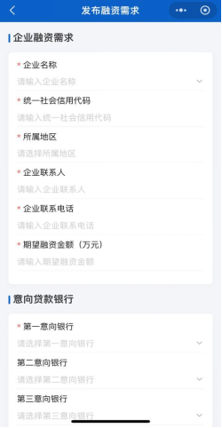 如有融资需求,请填写意向银行和走访时间,星标为必填项。