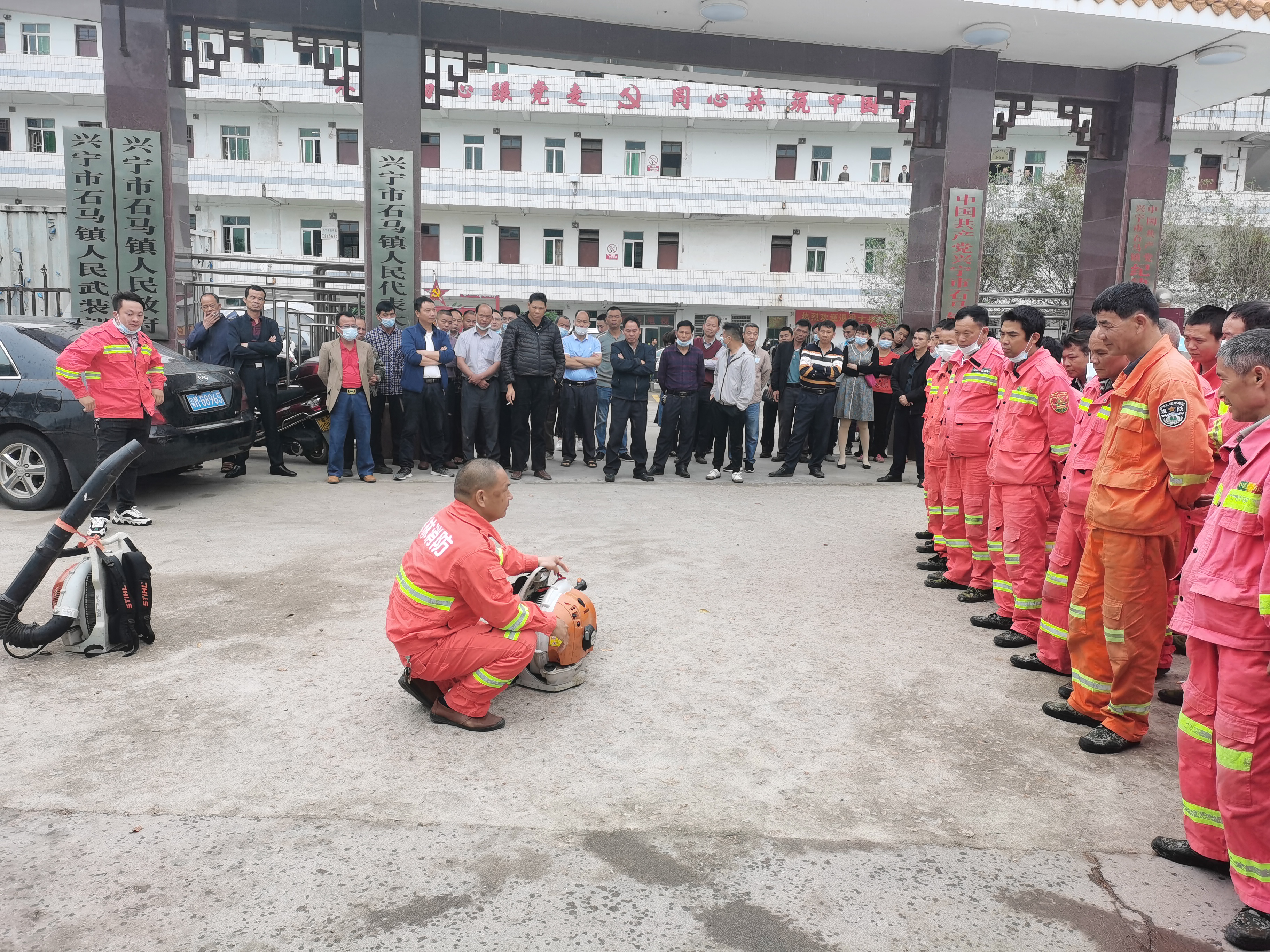会后,全体成员在镇政府大院集中,环球国际官网 林业局扑火队钟伟雄同志进行扑火实操演练。