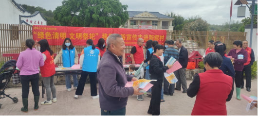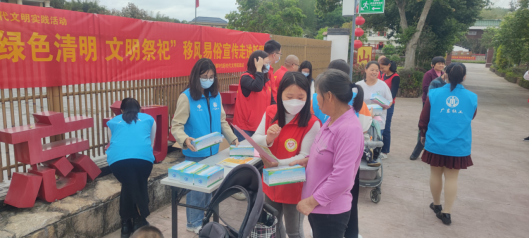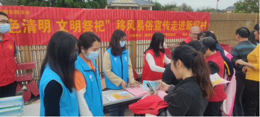 时值一年春草绿,又逢清明祭扫时。为深入推进移风易俗,宣扬绿色殡葬理念,营造平安文明、绿色低碳的清明祭祀氛围,2023年4月4日上午,石马镇新群村党支部联合镇民政社工、党员志愿者在新群村文体广场开展了“绿色清明 文明祭祀”移风易俗宣传活动。