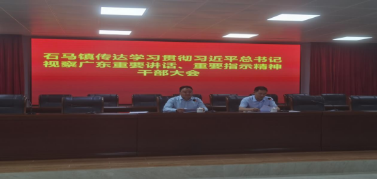 4月24日,石马镇传达学习贯彻习近平总书记视察广东重要讲话、重要指示精神干部大会在石马镇府三楼会议室召开,对全镇学习宣传贯彻工作进行动员部署。石马镇全体镇机关干部、各村(社区)党组织书记共120多人参加会议。会议由镇党委书记罗超主持。