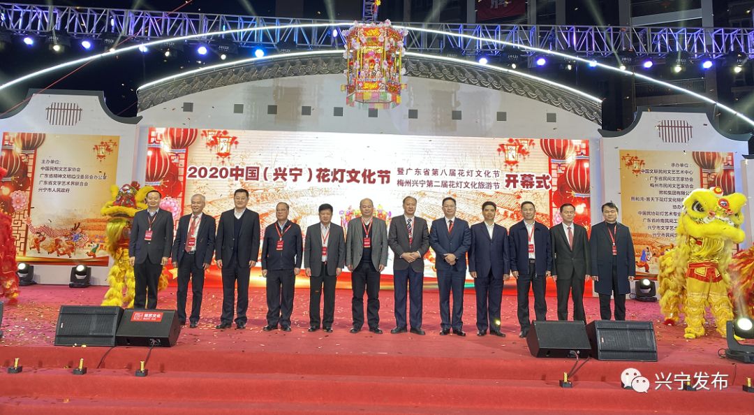 在热闹欢乐的气氛中,花灯队伍庄重进场,出席的领导嘉宾移步上台,共同见证客家传统的升灯仪式!