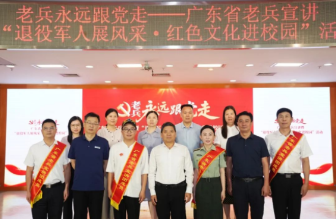 为深入学习贯彻习近平总书记关于退役军人工作的重要论述,充分发挥退役军人先进典型示范引领作用,6月10日下午,由中共广东省委退役军人事务工作领导小组办公室、广东省退役军人事务厅主办的“老兵永远跟党走——广东省老兵宣讲暨‘退役军人展风采·红色文化进校园’”活动在广州大学番禺校区隆重举行。广东省退役军人事务厅党组成员、副厅长张学君,广州大学党委常委、副校长张其学,羊城晚报报业集团党委委员、副社长、副总编辑孙璇等领导出席活动。