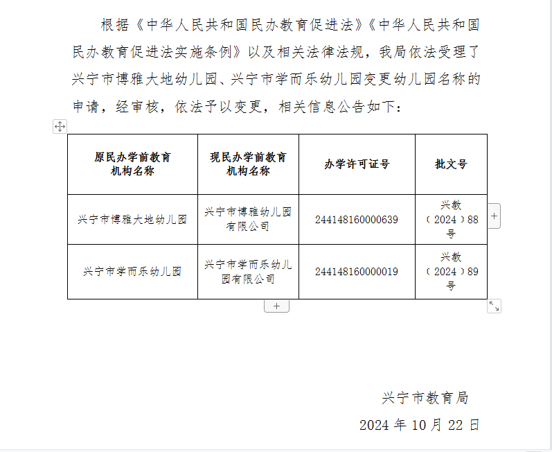 关于环球国际官网 博雅大地幼儿园、环球国际官网 学而乐幼儿园变更幼儿园名称的公告