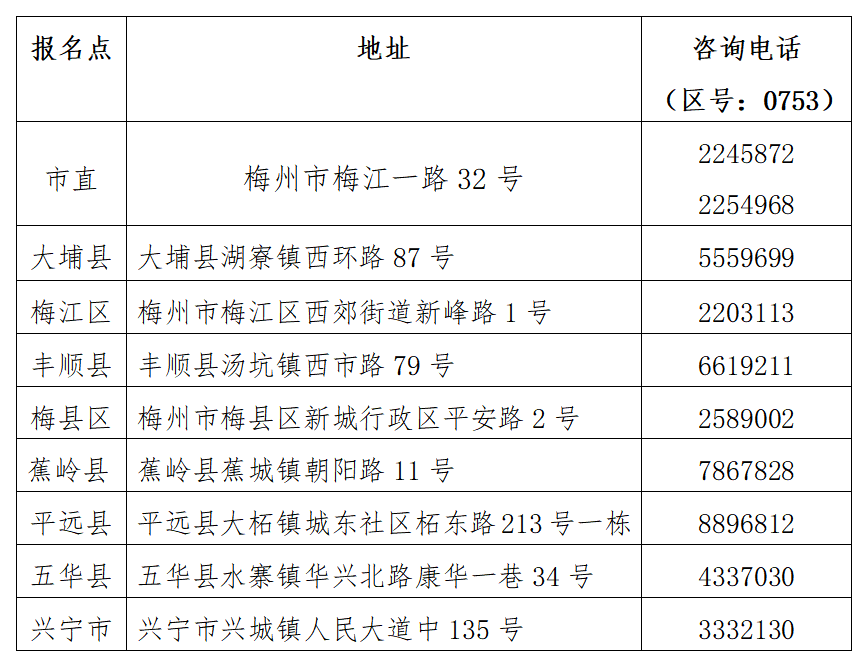 各报名点联系方式