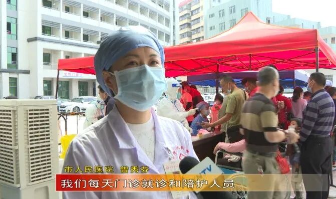 市人民医院 曾秀芬:我们每天门诊就诊和陪护人员,差不多有两千人左右,核酸检测量也有2000多,都是要求全员核酸。