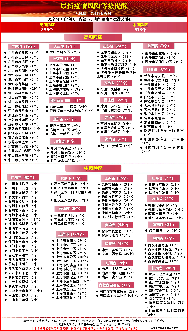 最新疫情风险等级提醒(截至7月14日 9:30)