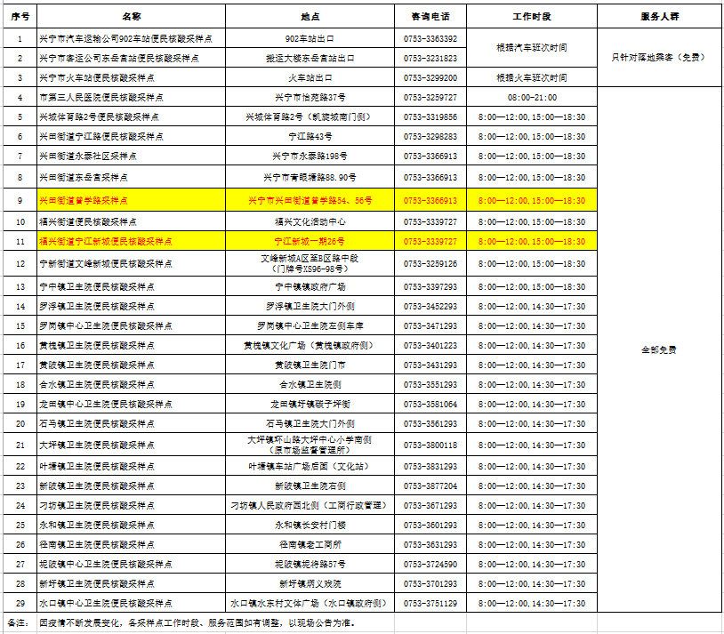 1.各采样点工作时段、服务范围如有调整,以现场公告为准。