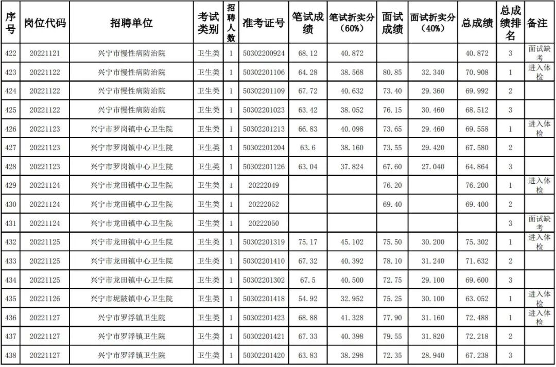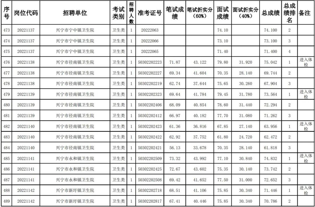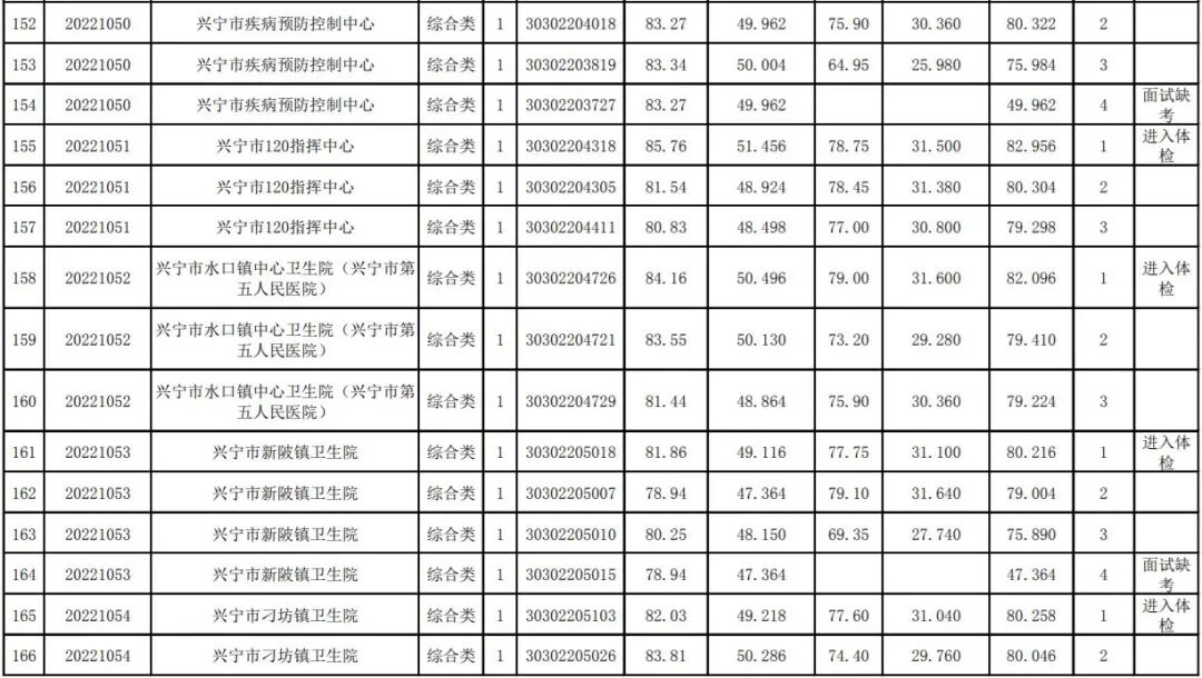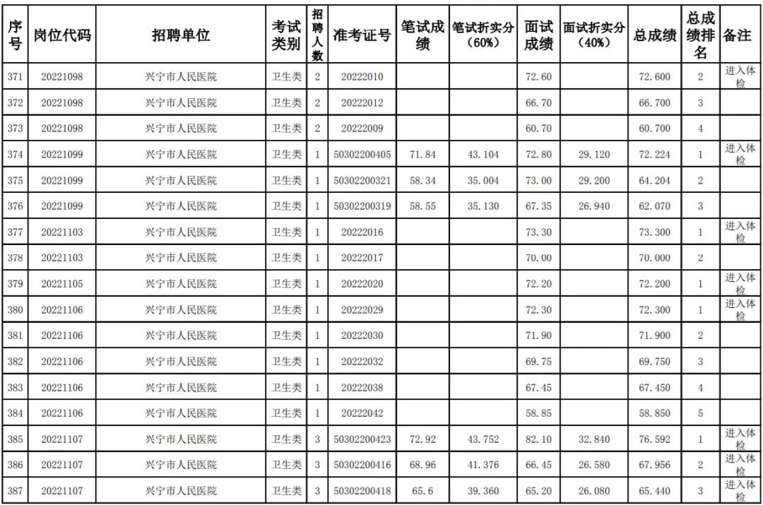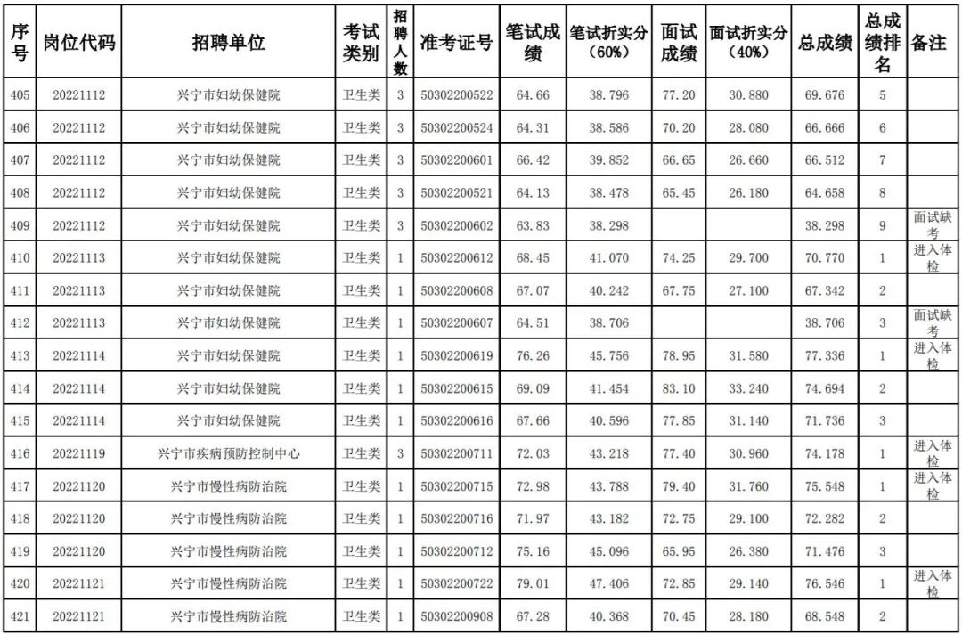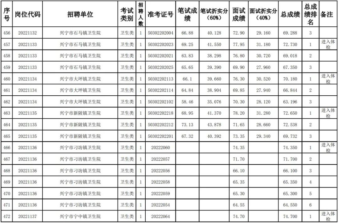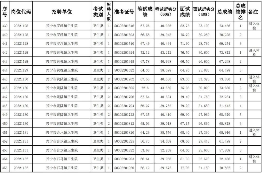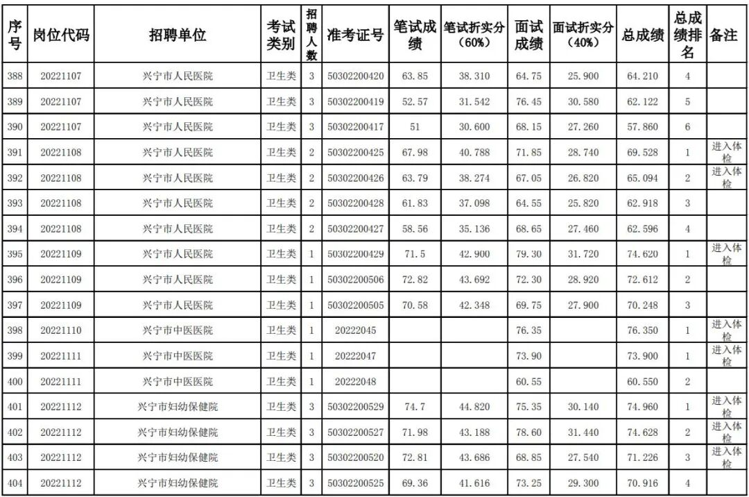其中,卫健系统考生总成绩及排名名单: