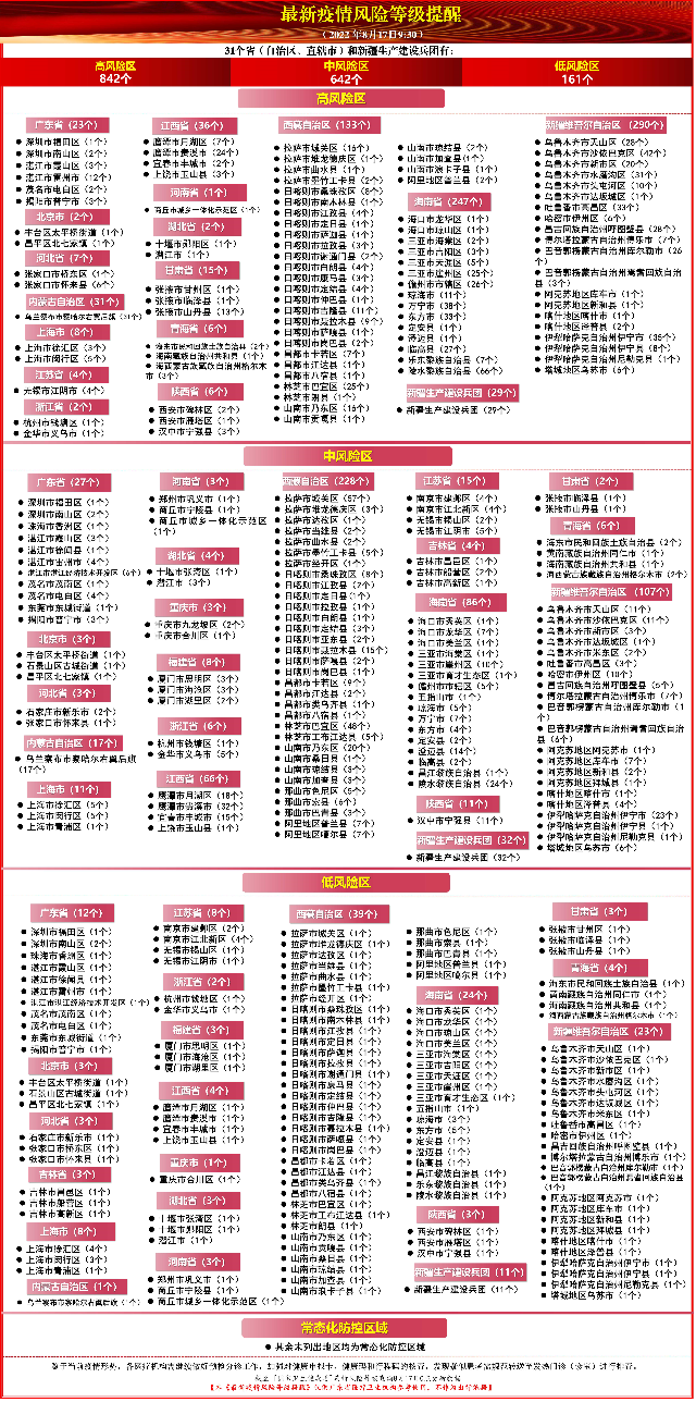 最新疫情风险等级提醒(截至8月17日 9:30)