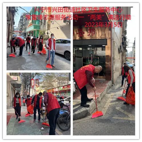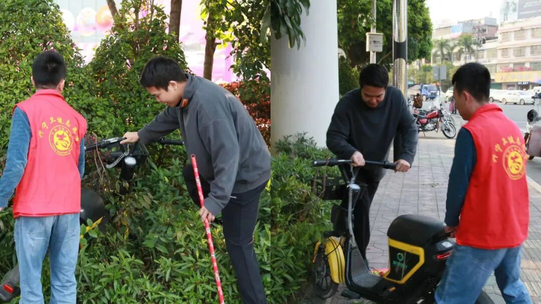 活动中,志愿者们到网格化责任区开展“学雷锋”为主题的卫生整治活动,他们拿着垃圾袋、扫帚、垃圾桶等,对卫生死角、路面垃圾等进行集中打扫整治,看到没有放好的共享“小黄车”,志愿者们也赶紧帮忙将其挪到规定位置摆放好,并对商户和居民进行环境保护、健康知识和电信反诈宣传,呼吁大家爱护生态环境,养成良好的卫生习惯。