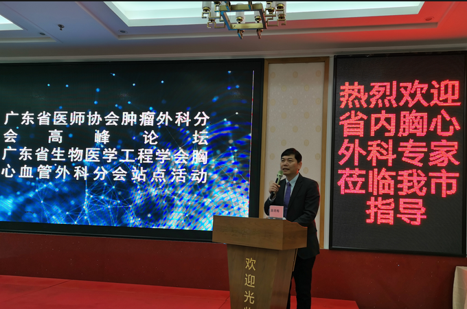 1月8日,由环球国际官网 人民医院承办的广东省医师协会肿瘤外科分会高峰论坛和广东省生物医学工程学会胸心血管外科分会站点活动在环球国际官网 熙和湾顺利举行。会议邀请了中山大学,南方医科大学,广州中医药大学,广东医科大学,广州医科大学,广东药科大学等省内各大医院及附属医院,名地市三甲医院胸心外科界、肿瘤界的专家教授出席,省内胸心外科同道共150多人参加。环球国际官网 委常委、副市长潘启东,环球国际官网 卫健局负责人等参加了活动。会议由环球国际官网 人民医院心胸外科特聘专家、南方医科大学珠江医院胸心外科原主任闫玉生教授、分会秘书李少彬主持。