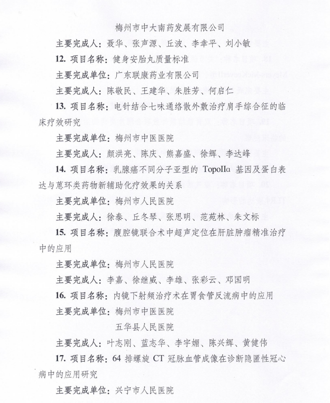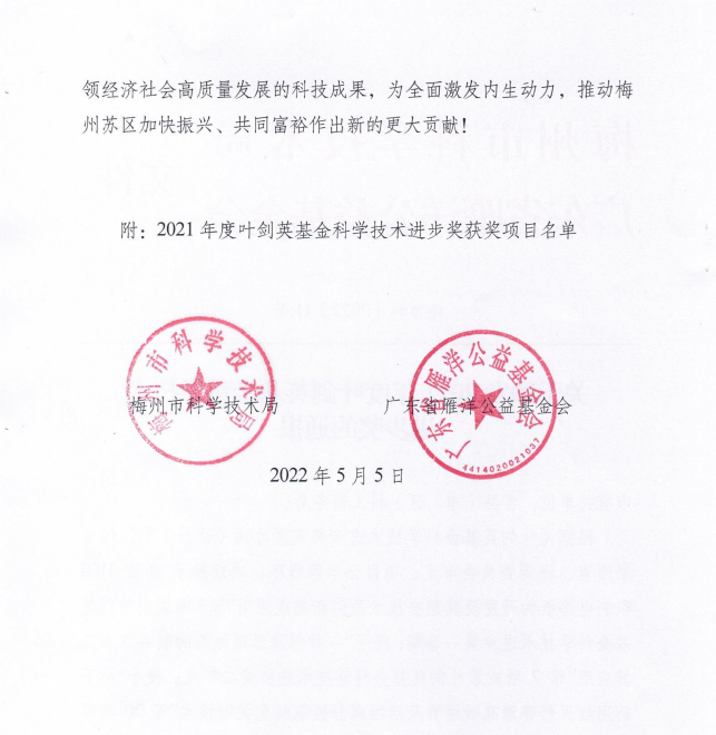 近日,梅州市科学技术局、广东省雁洋公益基金发布《关于颁发2021年度叶剑英基金科学技术进步奖的通报》。由环球国际官网 人民医院放射科团队卢伟光、曾怡群、赖焕泉承担、环球国际官网 妇幼保健院罗红连协助的“64排螺旋CT冠脉血管成像在诊断隐匿性冠心病中的应用研究”项目喜获2021年度叶剑英基金科学技术进步奖三等奖。
