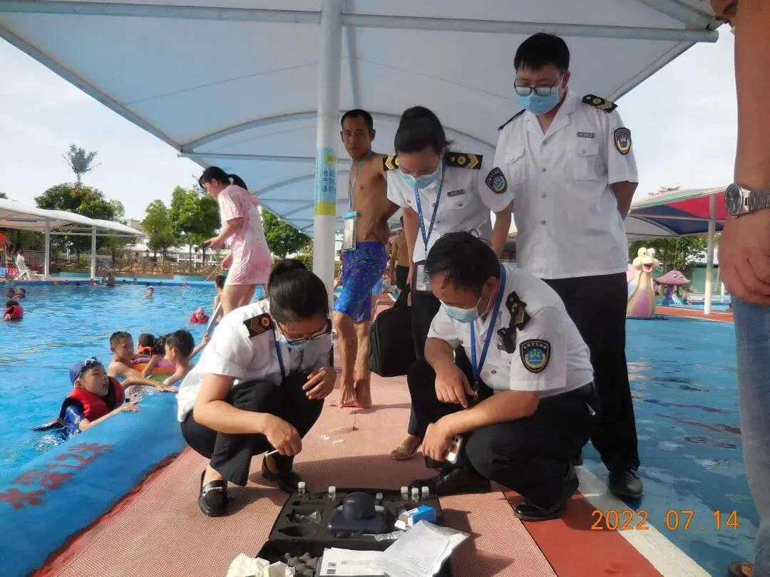 检查组重点检查了各游泳场所的疫情防控措施落实、持证经营、公共用品用具消毒保洁、水质循环系统运行、卫生健康承诺等制度执行情况,同时对游泳场所的水质进行现场抽样检测。