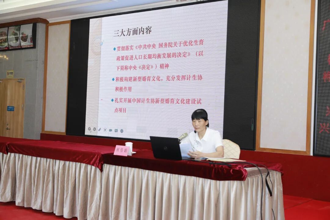 启动仪式后,进行了新型婚育文化能力提升专题培训。梅州市计生协负责同志就深入贯彻落实中央《决定》精神,充分发挥计生协作用,扎实开展试点项目工作等三个方面进行系统的讲解。