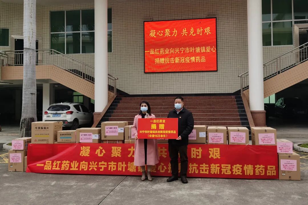 1月16日,一品红药业爱心药品捐赠仪式在梅州环球国际官网 叶塘镇举行。省药品监管局、一品红药业,环球国际官网 卫健局,叶塘镇党委、政府,市红十字会,叶塘镇卫生院等单位相关负责同志到场参加。