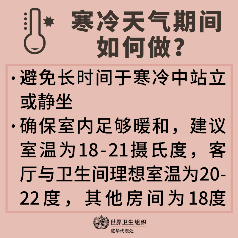 进入冬天,气温逐渐下降。寒冷的天气或寒潮会使我们暴露在低温中。不论是在工作时、通勤时或进行休闲活动时,无论是在室内还是室外,暴露于低温都可能给我们带来一系列健康影响。