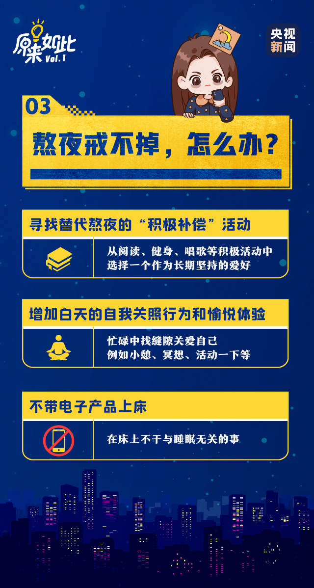 也许,你正饱受这些睡眠问题的困扰:很困却不想睡、熬夜戒不掉、想睡也睡不着……熬夜、失眠对身体有许多不可逆的伤害,我们应该怎样提升睡眠质量?不得已熬夜后如何补救?来一起学习