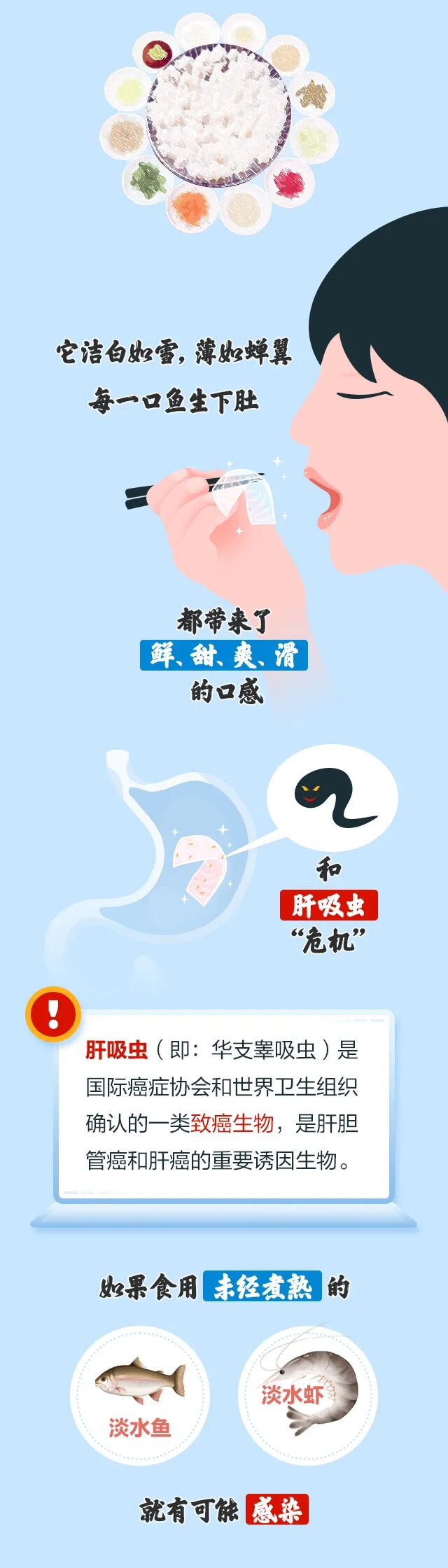 中国自古就有“病从口入”的说法,现代科学将它称为“食源性疾病”,这其中除了细菌病毒引起的跑肚拉稀,寄生虫病也是不容忽视的一类。夏天到了,爽口的淡水“鱼生”开始频繁出现在广东食客的餐桌上。