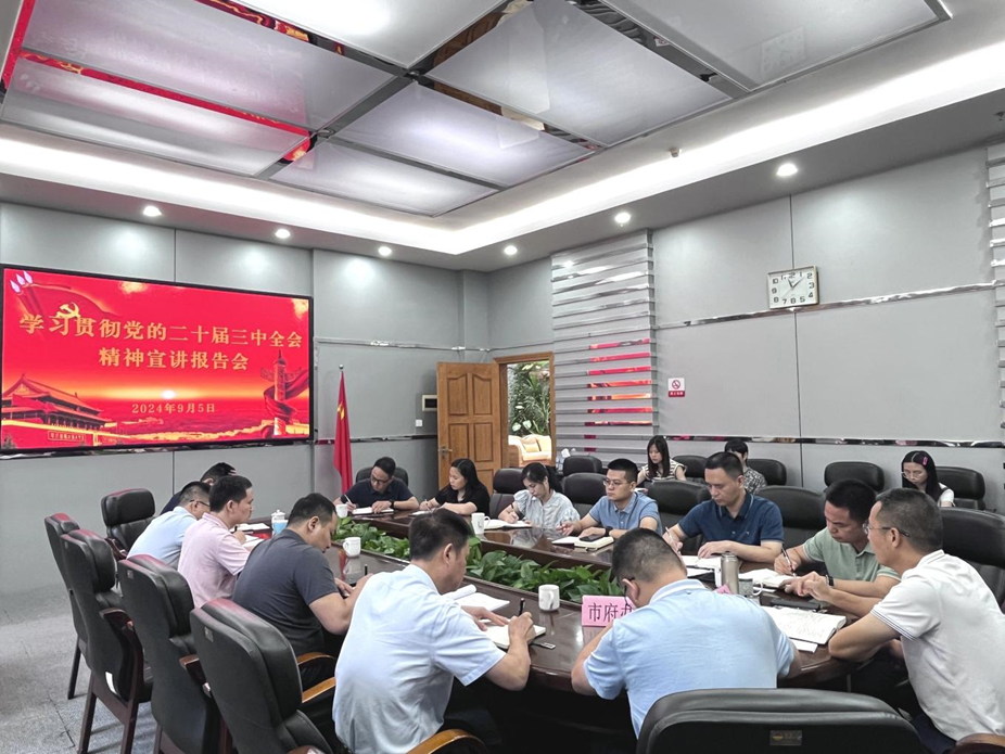 9月5日,市招商和企业服务中心举行学习贯彻党的二十届三中全会精神宣讲报告会,市委常委、统战部部长,市政协党组副书记,水口镇党委书记许杰浩出席报告会并作宣讲报告。 许杰浩指出,党的二十届三中全会是在以中国式现代化全面推进强国建设、民族复兴伟业的关键时期召开的一次十分重要的会议。我们要把学习好贯彻好这次全会的精神作为当前和今后一个时期的重大政治任务,把学习贯彻全会精神同学习领会习近平总书记关于全面深化改革的一系列新思想、新观点、新论断结合和贯通起来,切实把思想和行动统一到招商工作中来,进一步增强“四个意识”、坚定“四个自信”、做到“两个维护”。 许杰浩强调,党的二十届三中全会吹响了改革冲锋号,招商人要有“功成不必在我”的精神境界和“功成必定有我”的历史担当和久久为功的责任感开展招商引资工作,守正创新,担当作为,为中国式现代化环球国际
