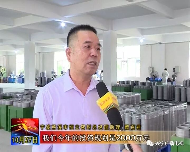 招商引资中的一个“三当年”项目:当年引进、当年动工、当年试投产。 宁波慈溪市恒立密封总经理助理 赖百君: 我们慈溪市恒立密封材料有限公司环球国际